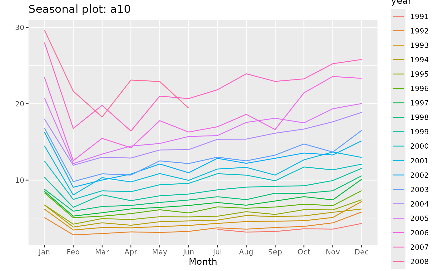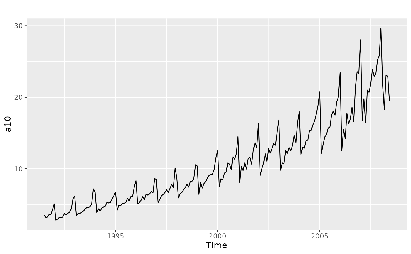 Monthly government expenditure (millions of dollars) as part of the Pharmaceutical Benefit Scheme for products falling under ATC code A10 as recorded by the Australian Health Insurance Commission. July 1991 - June 2008.
