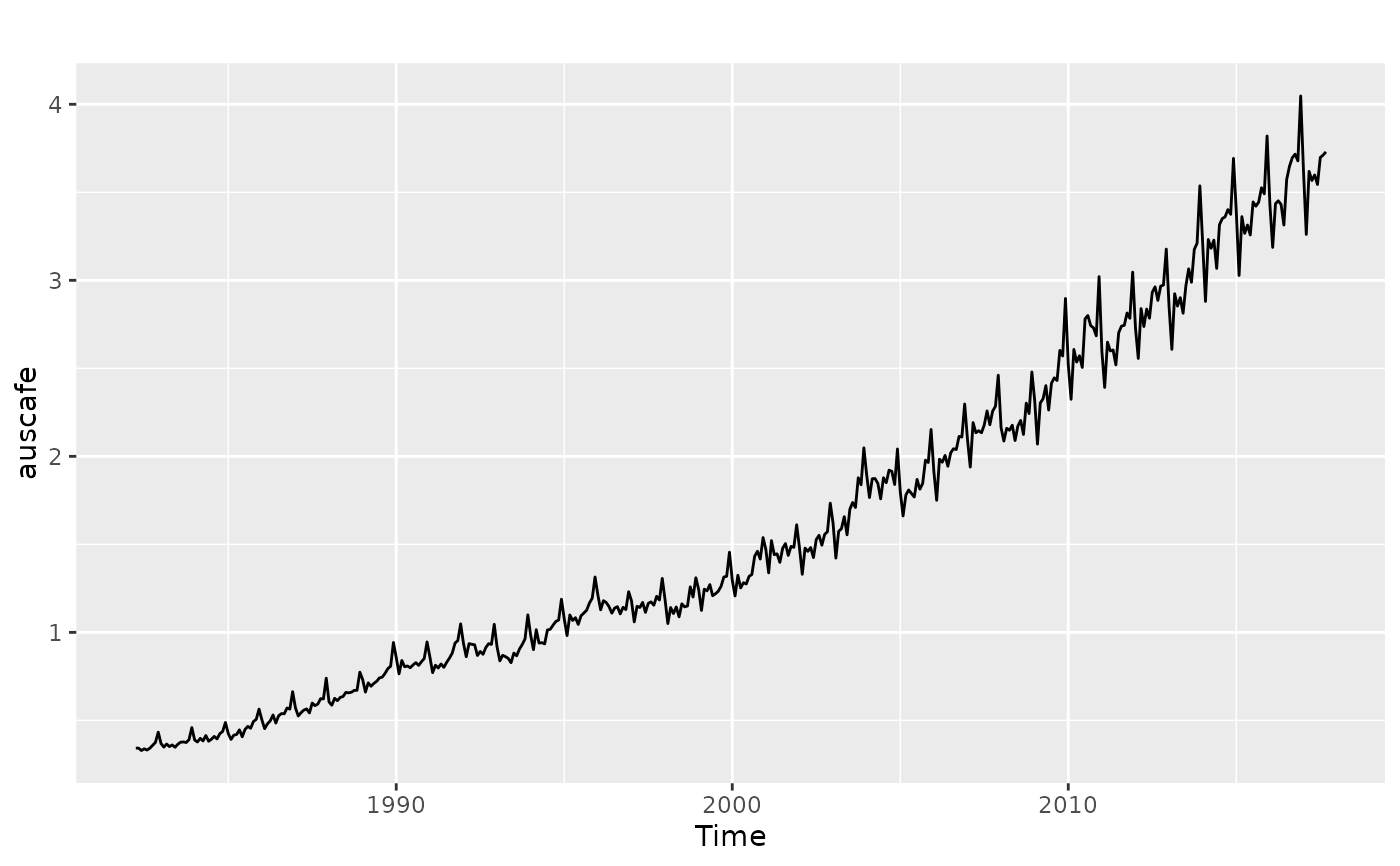 The total monthly expenditure on cafes, restaurants and takeaway food services in Australia ($billion). April 1982 - September 2017.