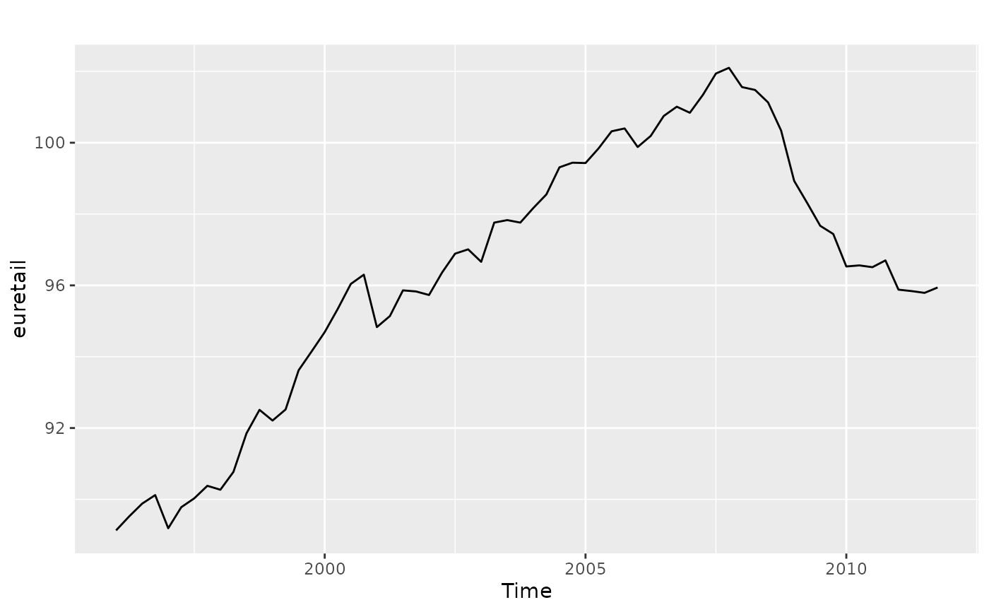 Quarterly retail trade index in the Euro area (17 countries), 1996-2011, covering wholesale and retail trade, and repair of motor vehicles and motorcycles. (Index: 2005 = 100).