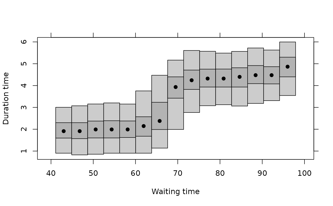 faithful.hdr <- hdr.cde(faithful.cde, prob = c(0.50, 0.95))